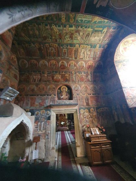 Es ist eine Durchgangskirche. In meheren Räumen aufgeteilt. Der eigentlich Kirchenraum mit Altar liegt am Ende. Das Kloster wird von Nonnen bewirtschaftet.