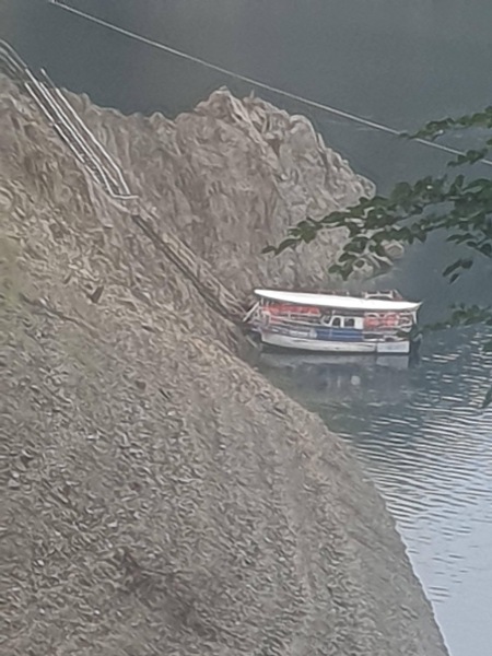 Auf dem Weg zum Pass der Transfaragasan gibt es einen großen Stausee den Lac Balea, Auf ihm fahren auch kleine Fahrgastschiffe. im Monent fehlt ihm sehr viel Wasser.