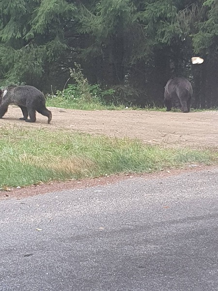 Mein erster Bär in freier Wildbahn, hängt lässig über der Leitplanke und wartet auf Futter. Es gibt halt leider Menschen welche die Tiere füttern und sich dann beschweren wen diese Menschen angreifen. Arm aus dem Fenster mit Futter bedeutet unter Umständen Arm ab.