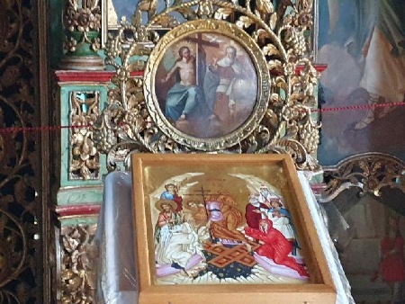 Die Kirche wird gerade restauriert . Auch hier die ganze Kirche von außen bemalt.